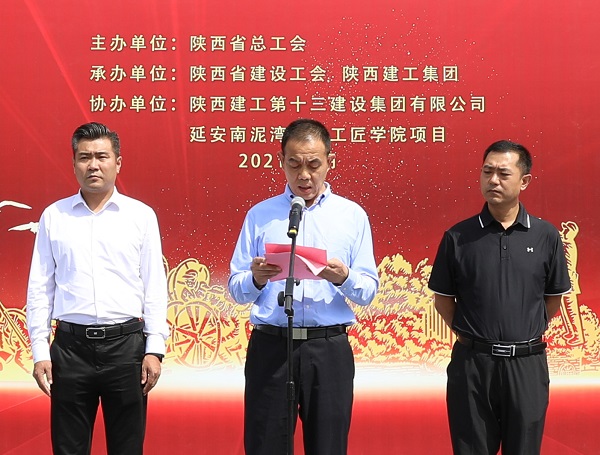 陜西建工集團(tuán)黨委常委、副總經(jīng)理劉小強(qiáng)在致辭中表示陜建作為我省最大的國企建筑鐵軍,在省委、省政府的領(lǐng)導(dǎo)下,在70余年的發(fā)展長河中,建設(shè)了一大批國防、科教、文衛(wèi)、公共服務(wù)等重點(diǎn)項(xiàng)目,積極服務(wù)于陜西發(fā)展和國家建設(shè),既有深厚的文化積淀,又有雄厚的綜合實(shí)力。有幸承建延安南泥灣勞模工匠學(xué)院這個(gè)重點(diǎn)項(xiàng)目,我們倍感榮幸,倍加珍惜。我們已將該項(xiàng)目列為十三建集團(tuán)的“一號(hào)工程”,調(diào)集精兵強(qiáng)將,以“出手必須出彩,完成必須完美”的作風(fēng)、“開局就是決戰(zhàn),起步就是沖刺”的魄力,“努力到無能為力,拼搏到感動(dòng)自己”韌勁,科學(xué)合理、協(xié)調(diào)高效的管理模式,將項(xiàng)目建設(shè)成為優(yōu)質(zhì)結(jié)構(gòu)工程、綠色施工示范工程,爭創(chuàng)魯班獎(jiǎng),為省總工會(huì)交上一份滿意的“答卷”。