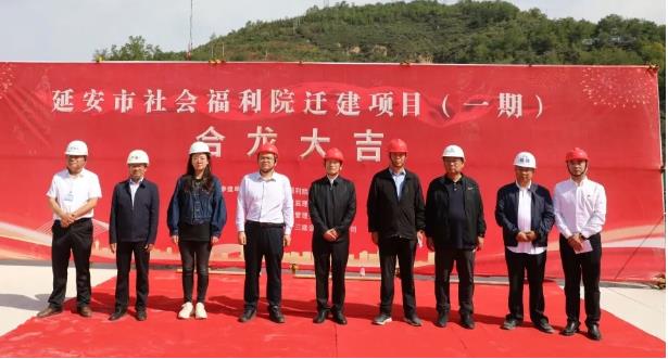 延安市民政系統(tǒng)職工代表,社會福利院職工代表,各設(shè)計、施工、監(jiān)理單位代表及全體項(xiàng)目管理人員等參加封頂儀式。