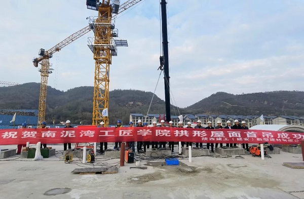 10月23日,由陜建十三建集團(tuán)承建的延安南泥灣勞模工匠學(xué)院項(xiàng)目首個預(yù)制拱型屋面順利完成吊裝。
