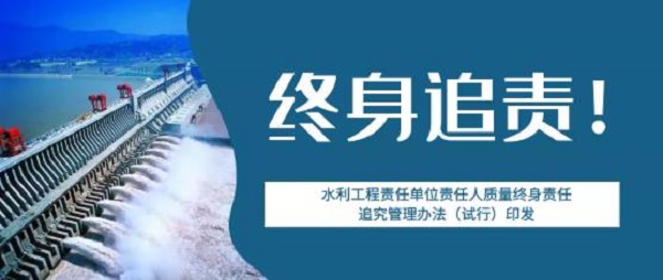為加強(qiáng)水利工程質(zhì)量管理,強(qiáng)化質(zhì)量終身責(zé)任,提高質(zhì)量責(zé)任意識,保證水利工程建設(shè)質(zhì)量,水利部組織編制了《水利工程責(zé)任單位責(zé)任人質(zhì)量終身責(zé)任追究管理辦法(試行)》(以下簡稱《辦法》),強(qiáng)調(diào)水利工程質(zhì)量終身責(zé)任管理實行書面承諾和竣工后永久性標(biāo)識等制度。