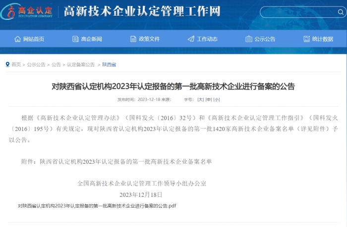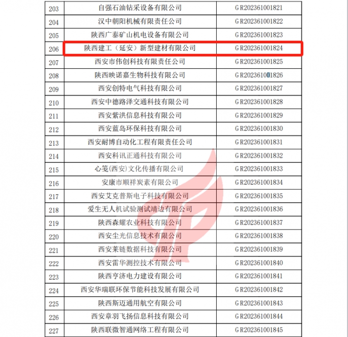 近日,全國高新技術產業(yè)企業(yè)認定管理工作領導小組辦公室公布了2023年陜西省認定的第一批高新技術企業(yè)名單,集團新型建材產業(yè)基地【陜西建工(延安)新型建材有限公司】通過國家級高新技術企業(yè)認定。