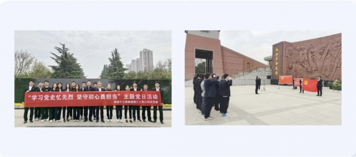 3月29日-4月3日,陜建十三建集團各單位積極組織黨員干部職工開展“學習黨史憶先烈·堅守初心勇?lián)敗鼻迕鞴?jié)主題黨日活動,旨在銘記歷史,緬懷先烈,激勵大家勇于擔當、奮進前行,助推企業(yè)高質(zhì)量發(fā)展!