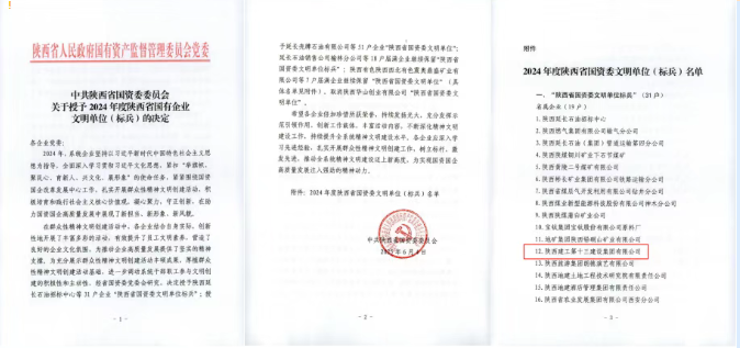 近日,中共陜西省國資委委員會印發(fā)關(guān)于授予2024年度陜西省國有企業(yè)文明單位(標(biāo)兵)的決定,集團獲評“陜西省國資委文明單位標(biāo)兵”。