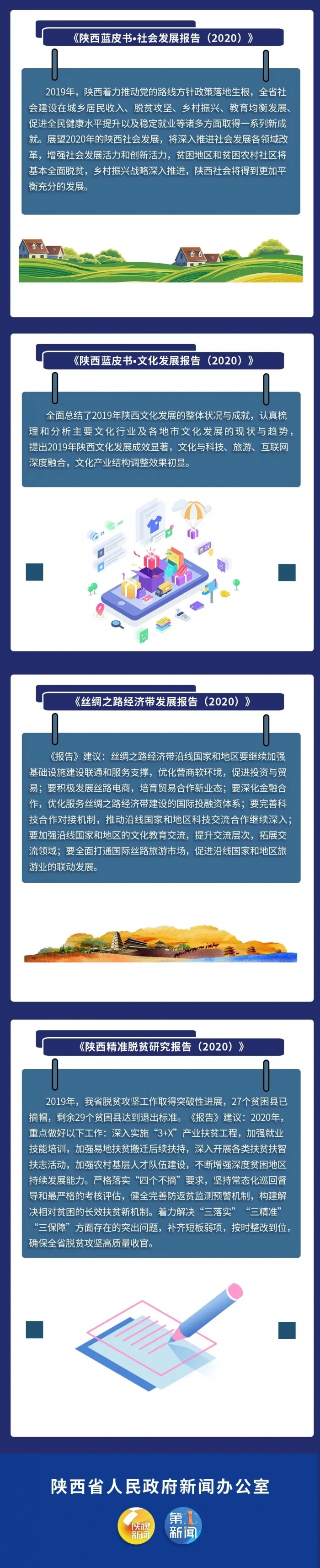 本次發(fā)布的《2020年陜西藍(lán)皮書》包括5本,分別是:《陜西經(jīng)濟(jì)發(fā)展報(bào)告(2020)》《陜西社會(huì)發(fā)展報(bào)告(2020)》《陜西文化發(fā)展報(bào)告(2020)》《絲綢之路經(jīng)濟(jì)帶發(fā)展報(bào)告(2020)》和《陜西精準(zhǔn)脫貧研究報(bào)告(2020)》,均由社會(huì)科學(xué)文獻(xiàn)出版社于日前正式出版。