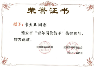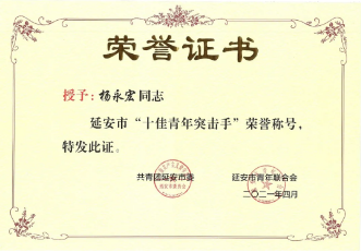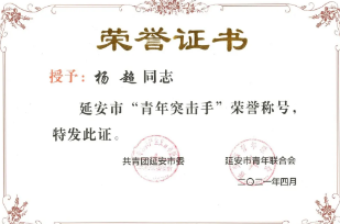 陜建十三建集團團委被授予“延安市五四紅旗團委”稱號,集團南泥灣現(xiàn)代農業(yè)示范園項目青年突擊隊被授予“延安市青年突擊隊”稱號,楊永宏被授予“延安市十佳青年突擊手”稱號,薛淑元被授予“延安市優(yōu)秀共青團干部”稱號,楊超被授予“延安市青年突擊手”稱號,李大衛(wèi)被授予“延安市青年崗位能手”稱號。