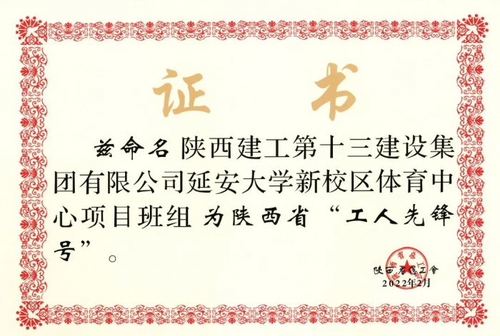 近日,陜西省總工會下發(fā)《關于為“十四運會和殘?zhí)貖W會”作出突出貢獻的集體和個人授予陜西省五一勞動獎和陜西省工人先鋒號的決定》,陜建十三建集團延安大學新校區(qū)體育中心項目班組榮獲陜西省“工人先鋒號”稱號。