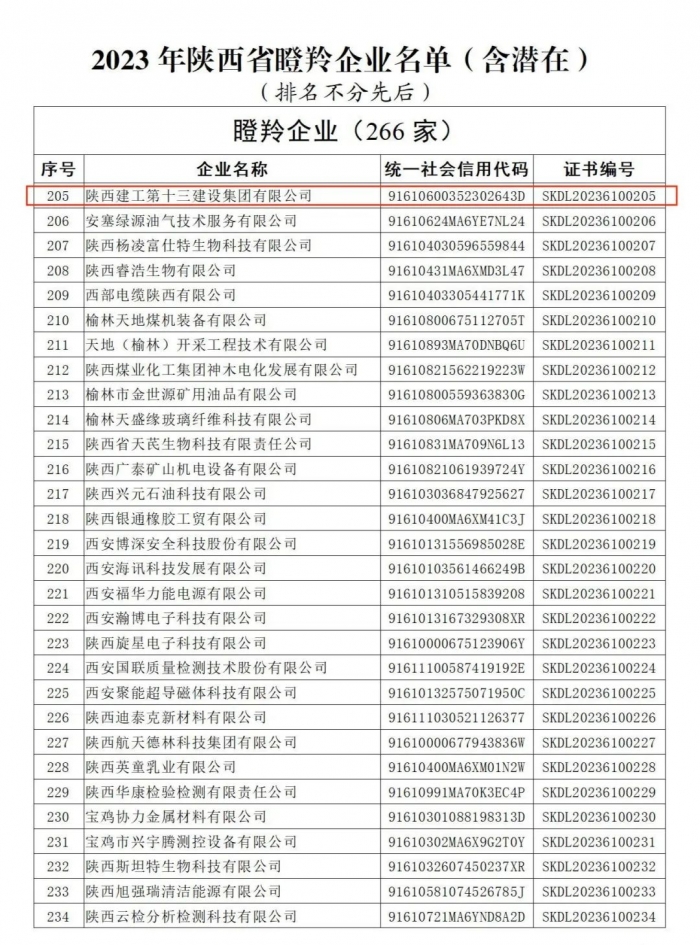 近日,陜西省科學(xué)技術(shù)廳公布了《2023年陜西省瞪羚企業(yè)》名單。陜建十三建集團(tuán)被評(píng)為2023年陜西省瞪羚企業(yè)。