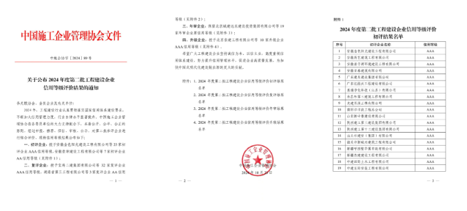 AAA!集團(tuán)榮評(píng)中施企協(xié)信用等級(jí)最高評(píng)價(jià)